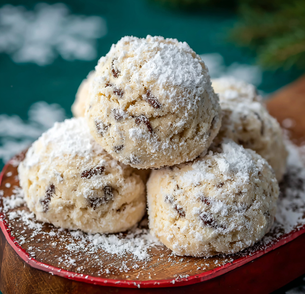 Festive Snowball Cookies with White Chocolate & Sprinkles
